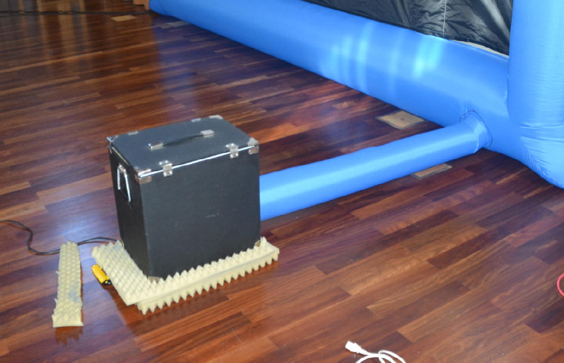 Den Lüfter habe ich zur Schallisolation in einem Koffer untergebracht und noch auf spezielle Absorbermatten gestellt.