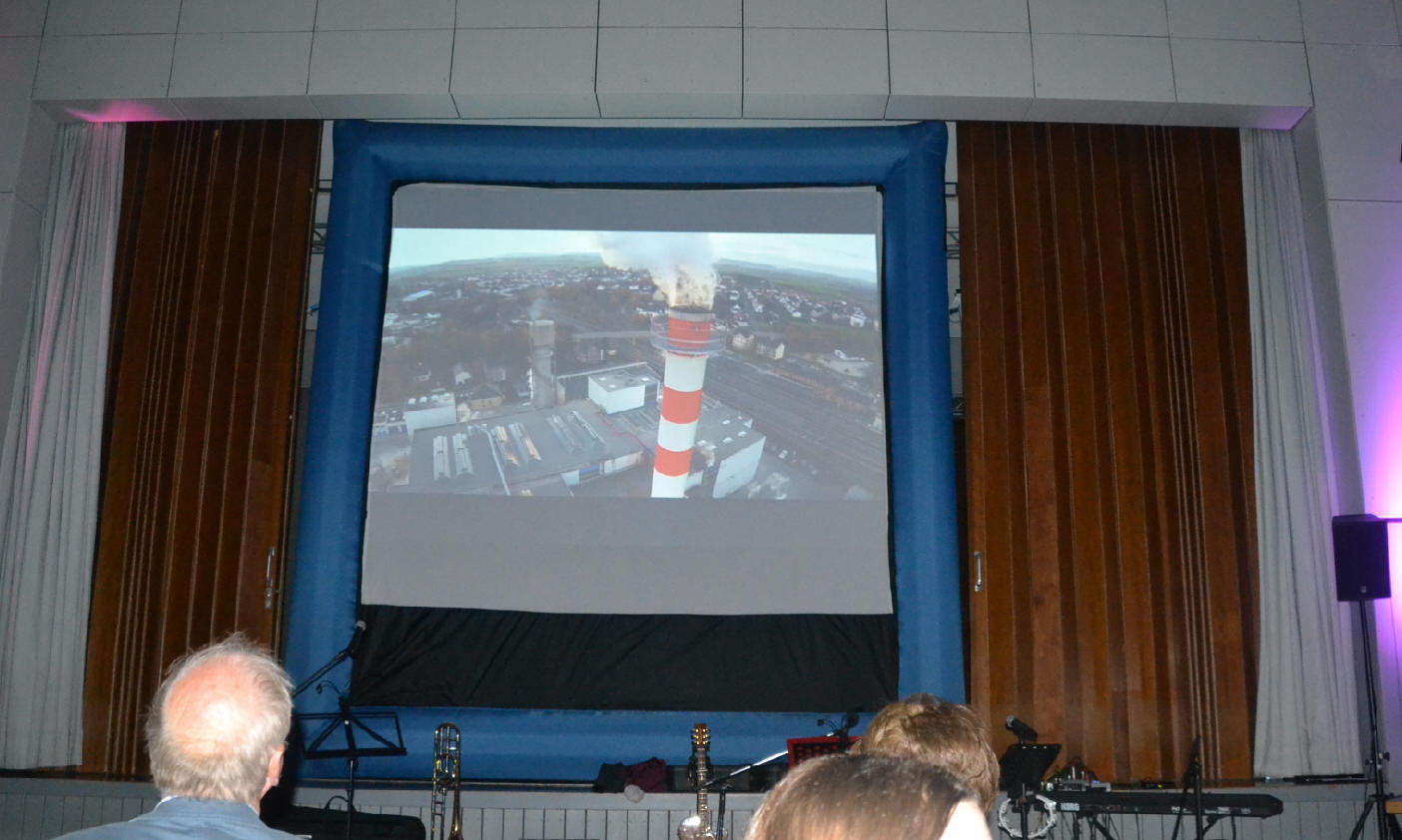Hier meine aufblasbare Leinwand bei ihrem ersten Einsatz ( Helferfest unserer 1200 Jahrfeier in Wabern ). Die Hintergrundprojektion hatte hier Riesenvorteile.