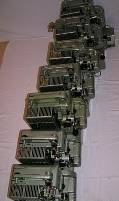 Auch als " Sonderanfertigung" konnten einige Modelle mit einem Synchronmotor bestellt werden . Beispielhaft beim Zweibandprojektor zu sehen. Es gibt auch eine "Albino"-Variante die auch " Bunte Kuh " genannt wird.