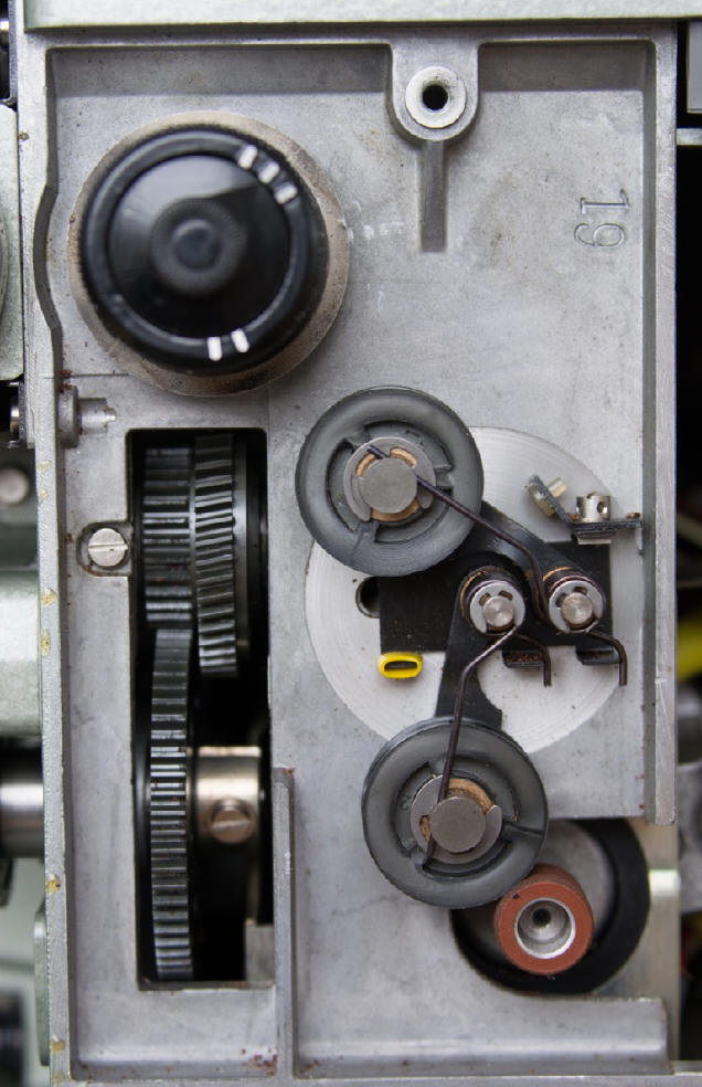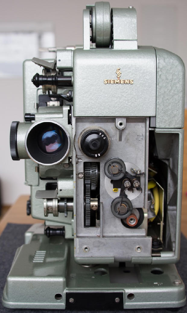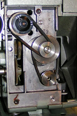 Danke an Horst Gfrerer für die Bilder eines Projektors der noch die Flachriemausführung (hier ohne Riemen) besitzt: