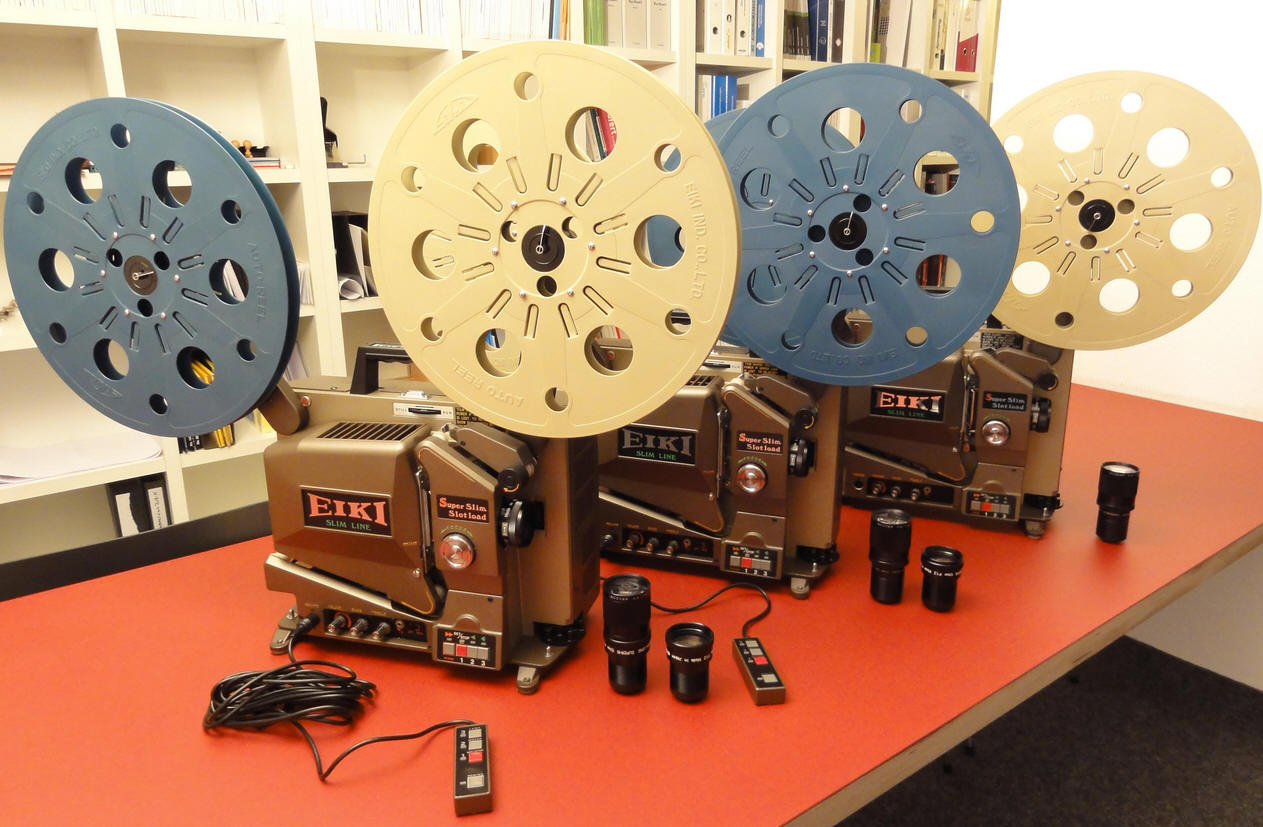 Von Thomas Degenfelder habe ich diese sehr schöne Eiki-Parade zugeschickt bekommen. Diese Eiki-ESL sind sein ganzer Stolz, zumal zwei davon die zugehörige (aber seltene) Kabelfernbedienung besitzen.