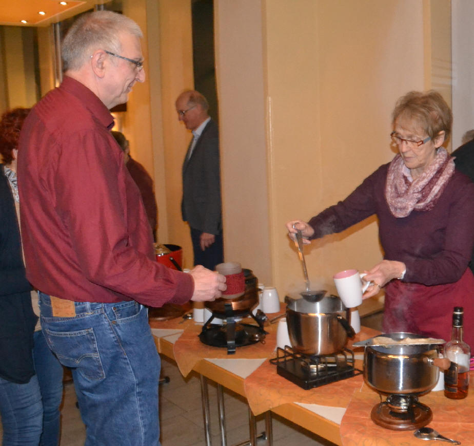 Und nachdem fest stand, dass die Schule wegen der Bauarbeiten geschlossen war, gönnten wir uns eine Pause und wurden dem Film mit dem Genuss von Feuerzangenbowle gerecht . Lecker Häppchen gab`s natürlich auch .