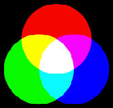 aus den 3 Grundfarben ( rot, grün und blau ) alle anderen Farben mischen lassen.