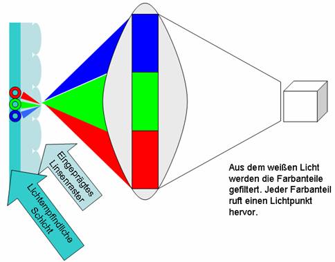 Linsenrasterfilmverfahren liegt die additive Farbmischung zugrunde, wonach sich