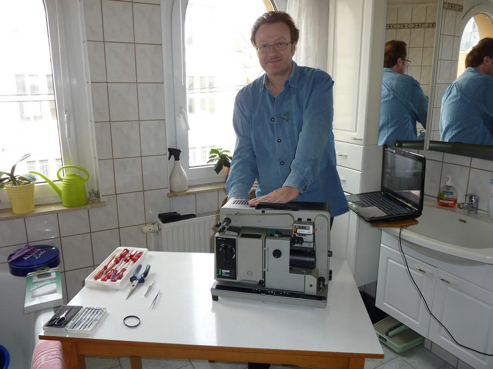 Bauer Bosch, der die Funktionen des P8 Selcton Projektors verdeutlicht.
