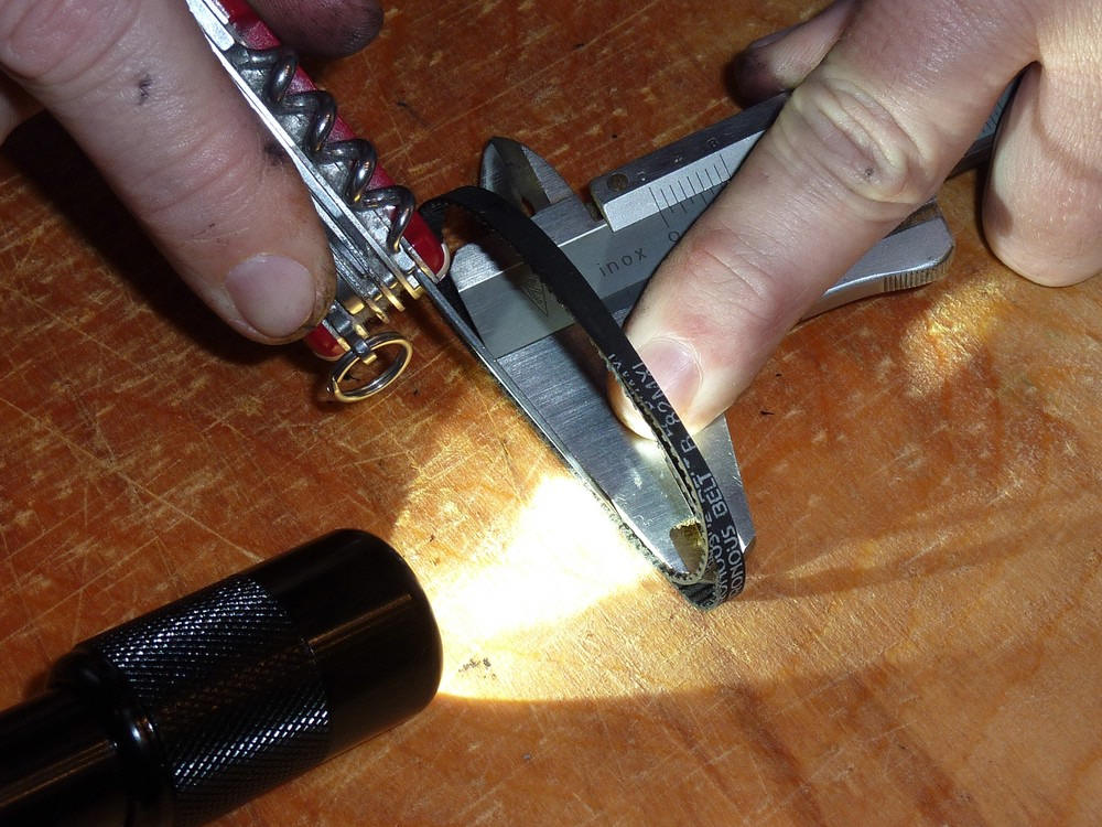 Den Riemen von Motor zur Hauptwelle muss man selbst ca. 3-4 mm schmaler machen,
