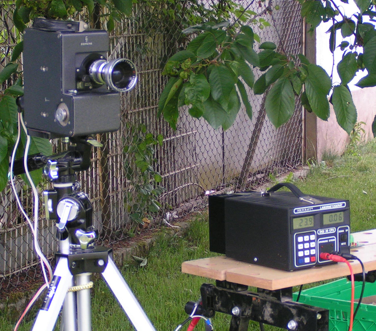 Auch wenn ab und zu mal der Film nicht ganz reibungslos in der Kassette transportiert wurde, so war ich insgesamt sehr zufrieden und von der Präzision des Registriergerätes begeistert. Andec Film in Berlin war so freundlich mir die Kassetten für das Registriergerät und meine CII zu laden, 2 Super 8 Kassetten hatte ich mir schon mal für eine andere Spielerei besorgt – also war ich startklar. Da die Registrierkamera für Langzeitaufnahmen konzipiert ist, sollte sie auch so ihr Können beweisen. Ursprünglich wollte ich die Blütezeit unseres Kirschbaums dokumentieren. Doch bis ich alle Vorbereitungen abgeschlossen hatte, war es dafür schon zu spät. Eine spezielle Aufgabe musste her: aus der Eröffnung der Poolsaison konnte man doch eine Doku machen…….. Zwar würde die Langzeitaufnahme dadurch nur auf einen Tag beschränkt sein, aber der prinzipielle Funktionsbeweis bleibe ja erhalten. Kurz gerechnet : 12 m Film = 1578 Bilder, von 10:00 bis 19:00 filmen = 32400 Sekunden - > alle 21 Sekunden ein Bild. Steuerung programmiert, Kameras geladen und am nächsten Tag gings raus in den Garten.