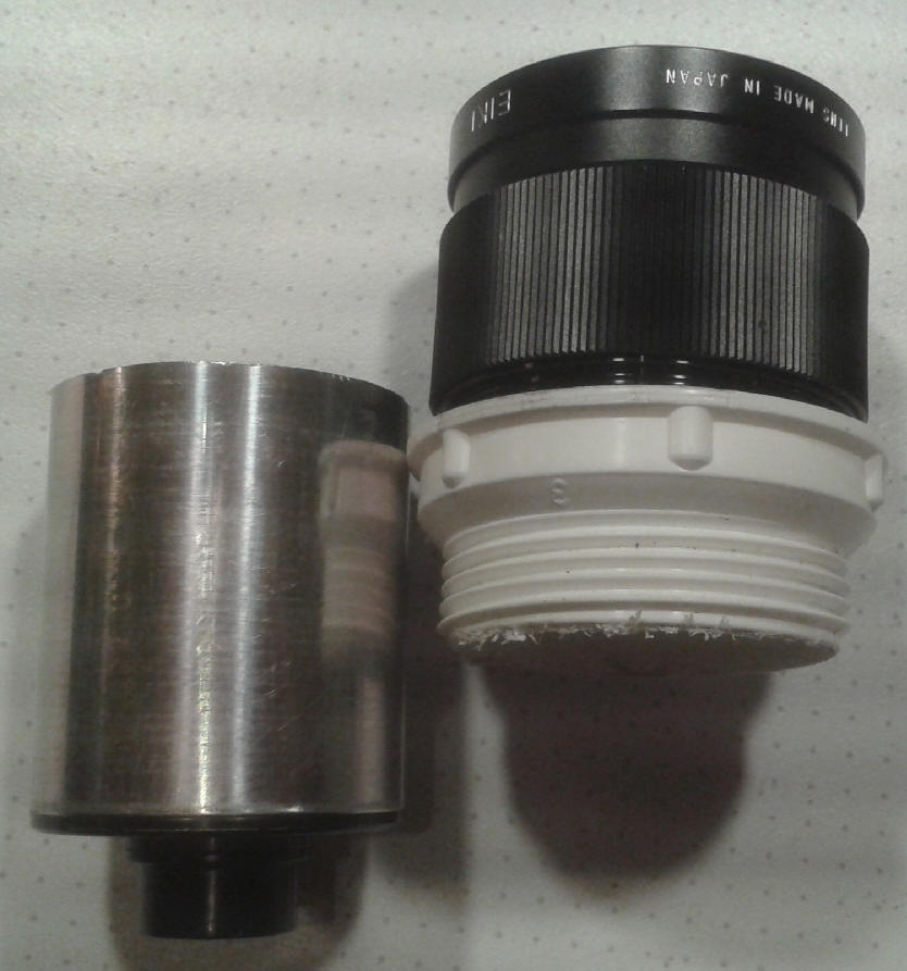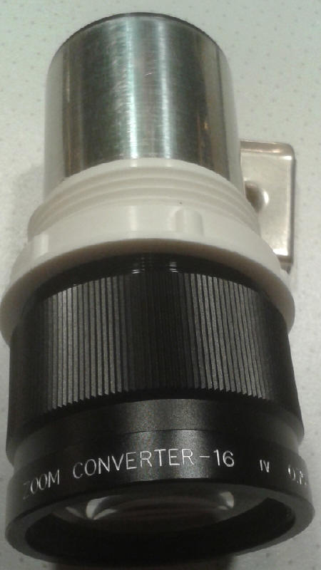 Und dann hätte ich noch eine Bastellösung für ein "kostengünstiges" Zoomobjektiv . Ein abgesägtes 25mm Objektiv mit einem EIKI ZOOM CONVERTER 16 0,75-1,25X wird so zu einem 18,75 - 31,25 mm Zoomobjektiv. Mit dem Adapterring aus Kunststoff konnte ich den Übergang herstellen ohne das Feingewinde des Konverters zu zerstören. Drehbankbesitzer habe da natürlich bessere Möglichkeiten :-)