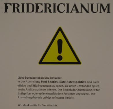 Aus exakt komponierten 16-mm-Filmen schuf der US-amerikanische Experimentalfilmer Paul Sharits (1943–1993) einzigartige Filmräume, die in ihrer Komplexität und Dichte einmalig in der Kunstgeschichte sind. Seine Installationen aus Mehrfachprojektionen (locational film pieces) lassen Film nicht nur zu einer visuellen, sondern auch zu einer körperlichen Erfahrung werden. Akribisch arrangierte Farbkompositionen (Shutter Interface, 1975), irreführende Film-im-Film-Darstellungen (3rd Degree, 1982) sowie von drastischen Motiven durchschossene Abstraktionen (Epileptic Seizure Comparison, 1976) bilden die Grundlage seines Nachdenkens über die Funktionen und Bedingungen des Mediums Film. Sharits vereint in seinem Werk eine die Sinne durchdringende Intensität gekonnt mit Reflexionen über die filmische Illusion und die Mechanismen des Sehens. Ganz auf seine Grundbestandteile reduziert, lässt Sharits in seinen Frozen Film Frames den Film schwebend zur Skulptur gefrieren: Zwischen hängende Plexiglasscheiben sind dicht an dicht liegende Filmstreifen montiert, deren Abfolge sowohl vertikal als auch horizontal betrachtet werden kann. Sharits führt den Film auf seine Grundbestandteile Zelluloid und Licht zurück und entzieht ihm gleichsam seine Grundbedingungen Zeit und Bewegung. Das Fridericianum widmet Paul Sharits die weltweit erste umfassende Retrospektive. Meine Neugier war sofort geweckt. Denn bei YouTube sich die Werke anzusehen ist das Eine, in einer Ausstellung sicher etwas ganz anderes. Vor dem geplanten Besuch noch kurz mit der Presseabteilung gesprochen – an dieser Stelle ein herzliches Dankeschön an Frau Würthner für das zur Verfügung gestellte Material und die freundliche Unterstützung bei der Fotogenehmigung – denn dieser Bericht lebt ganz wesentlich von den Bildern.