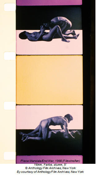 Eher versteckt, in einer kleinen Kuppel des Fridericianum, wurde der Film Piece Mandala/End War (1966) präsentiert. Dieser Film wurde bereits während der documenta 5 (1972) gezeigt. Als Betrachter stellte man sich bei diesem Werk die Fragen: was sehe ich?, was ändert sich?, was glaube ich zu sehen ?