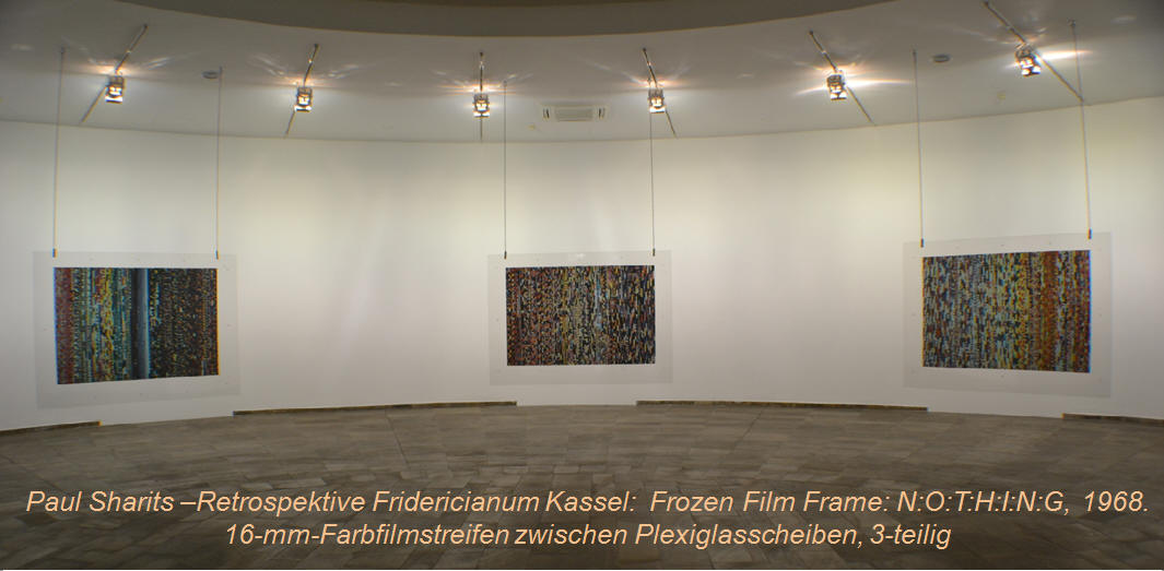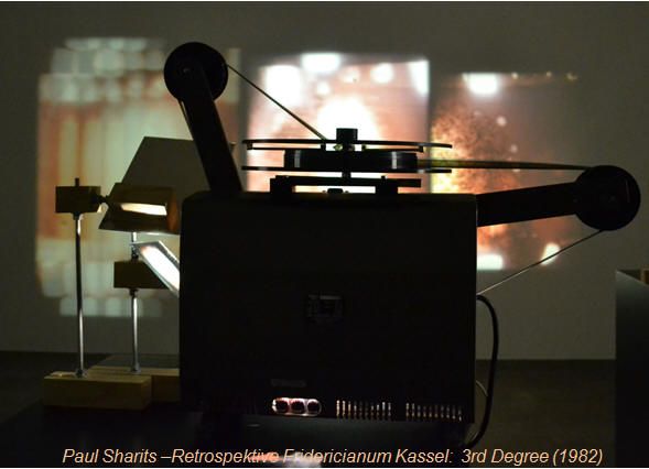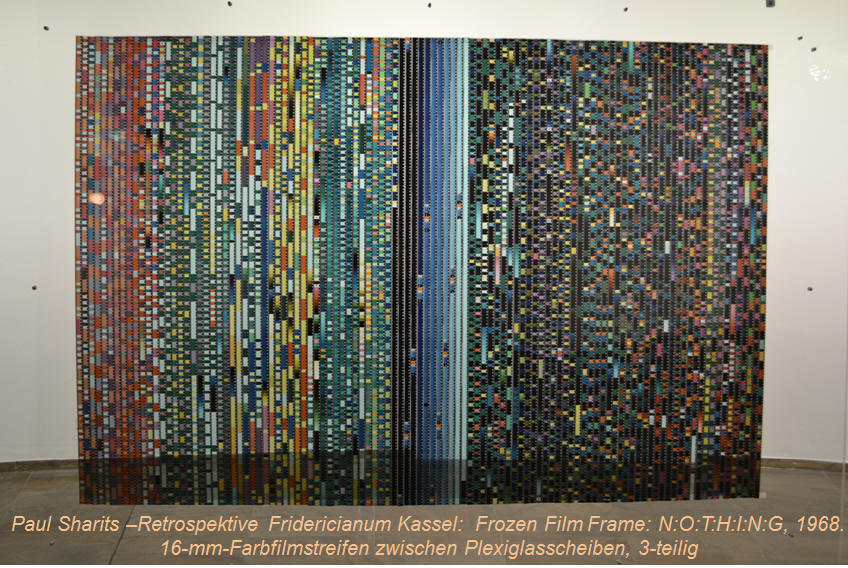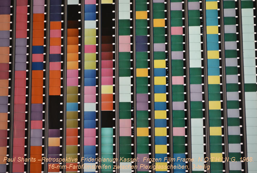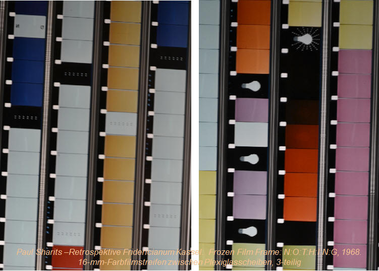 Paul Sharits – Eine Retrospektive ( Ausstellung im Fridericianum Kassel ) Wer in (oder näheren Umgebung von) Kassel wohnt, dem ist die Documenta mit ihren Ausstellungen zeitgenössischer Kunst sicher gut vertraut. Auf Kunst und Künstler muss man sich einlassen – trotzdem wird es kontroverse Diskussionen über Kunstwerke sicher immer geben. Unter Filmkunst wird auch jeder etwas anderes verstehen. Vermutlich denken aber sehr viele doch zunächst an die “klassische Herstellung und Vorführung“ von Filmen und erst nachrangig an die Experimental-/Avantgardefilme. Allerdings wurde ich schon des Öfteren von Kunststudenten zu technischen Möglichkeiten etwas abseits des „normalen Aufnehmens und Vorführens“ befragt. Dabei drehte es sich dann z.B. um Loops und Doppel bzw. Hintergrundprojektion. Besonders spannend fand ich das Projekt einer Studentin aus Salzburg. Sie befasste sich in ihrer Abschlussarbeit mit dem “Filmen ohne Kamera“. Ich überlies ihr damals neben Klebpresse und Betrachter auch etliche Meter Blankfilm und weißen Vorspann. Sie wollte das Filmmaterial direkt bearbeiten.