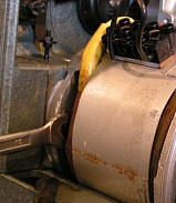 Zum Flugrost entfernen ( z.B. an den Umlenkrollen ) eignet sich hervorragend Nevr Dull . Leider musste ich beim ersten Probelauf feststellen, das auch der Antriebsmotor defekt war. Eine Wicklung war durchgebrannt, so dass der Motor zwar anlief aber unter Belastung natürlich stehen blieb. Ob Getriebe oder Motor zuerst defekt waren, werde ich wohl nie erfahren. Allerdings war ich dann wieder auf der Suche nach einem passenden Ersatz. Nachdem ich einen neuen Motor erhalten hatte, ging´s ans austauschen :