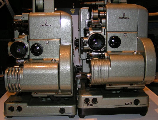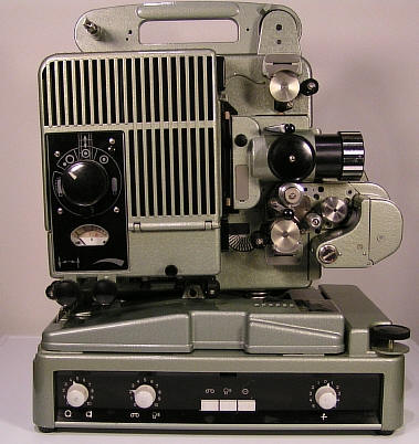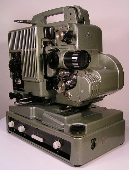 Hier ein Siemens Projektor 2000 mit Lichttonteil, der auf einen Verstärker aufgesetzt werden kann.