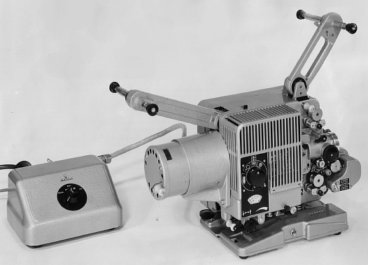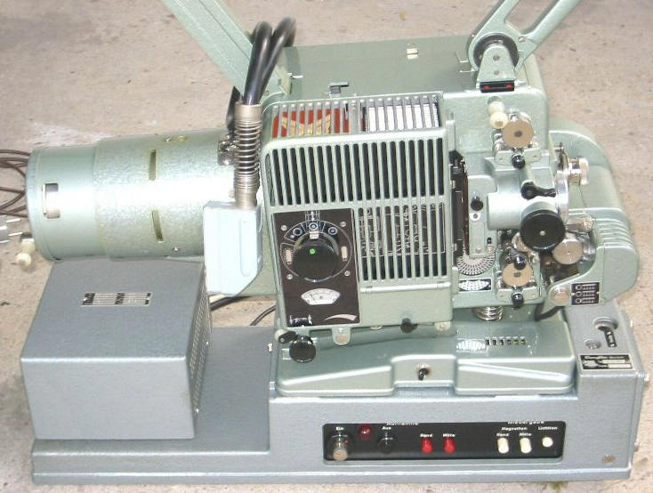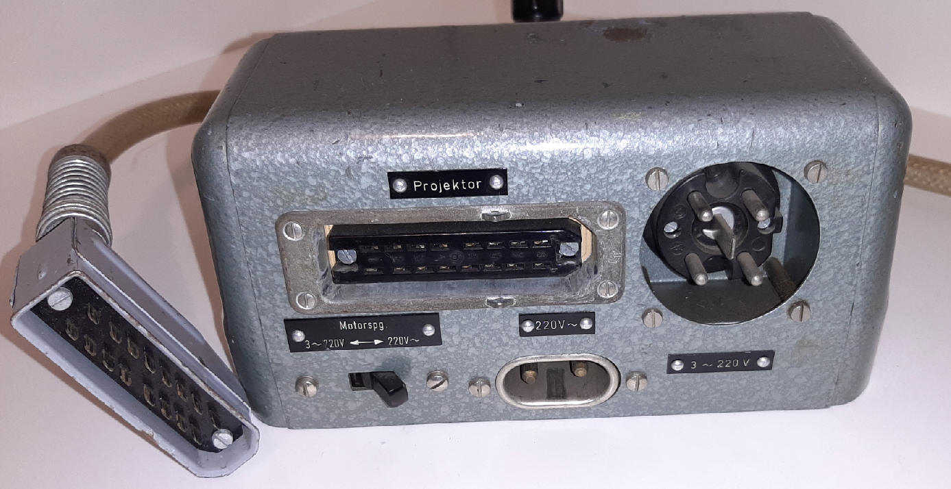 Für den Antrieb des Synchronmotors ist Drehstrom 220 V, 50 Hz , erforderlich, der dem Projektor üb er ein getrenntes Schaltgerät zugeführt wird. Das Schaltgerät dient zum Einschalten des Synchronmotors für Vor- und Rückwärtslauf und liefert die Spannung für den separaten Lüftermotor und die Projektionslampe. Liegt ein Drehstromnetz 380 V vor, so muss dem Projektor ein Drehstromtrafo 380/220 V vorgeschaltet werden.