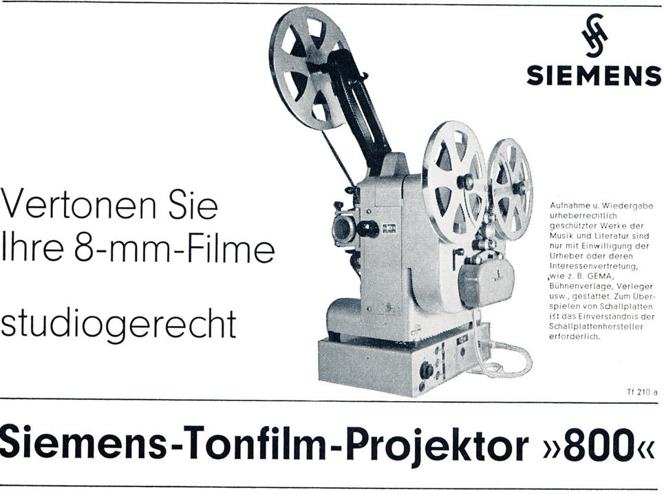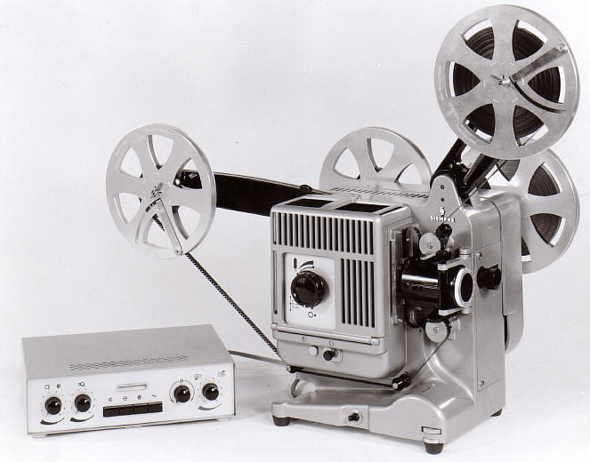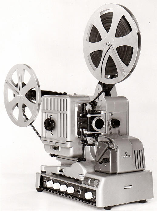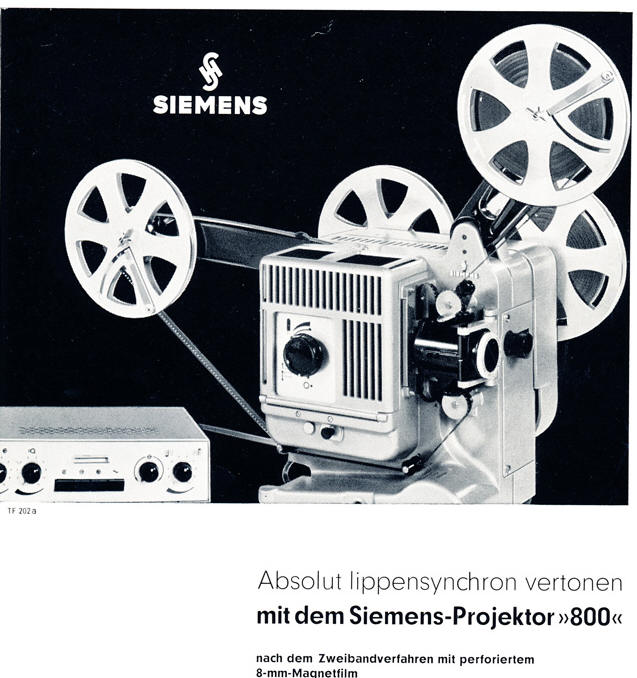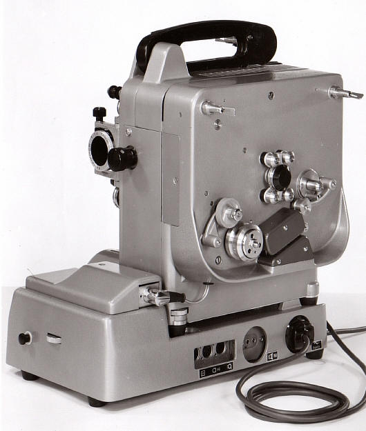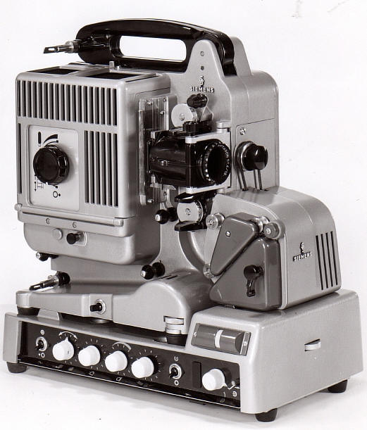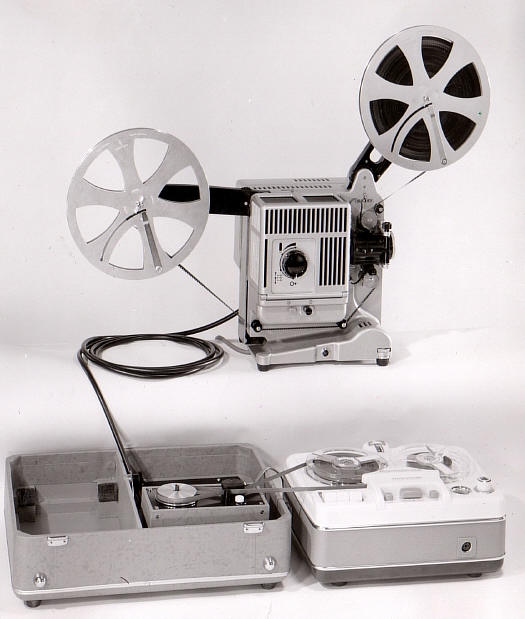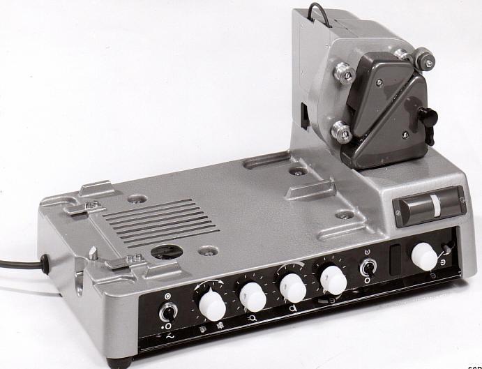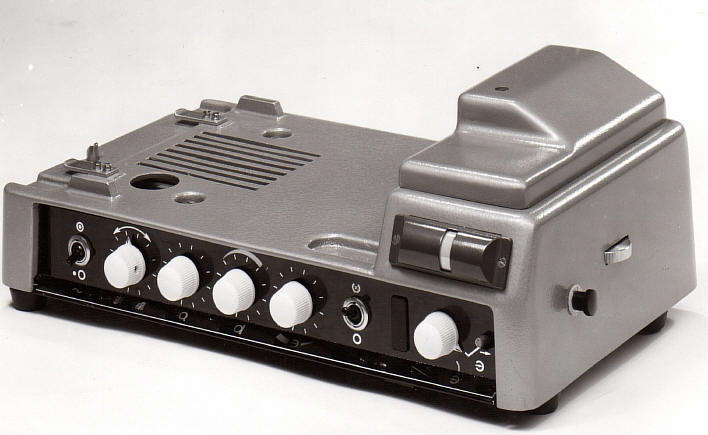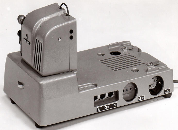 P800 mit Tonlaufwerk am Untersatzverstärker mit Einstreifendurchzuglaufwerk ( Vorstellung auf der Photokina 1960 - keine Serienfertigung )