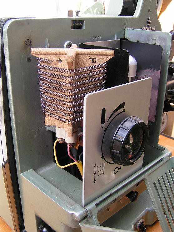 Auch bei der Projektionslampe findet man den guten alten Bekannten "Vorwiderstand " wieder. Allerdings ist dieser hier ausschließlich für den Lampenstromkreis vorgesehen.