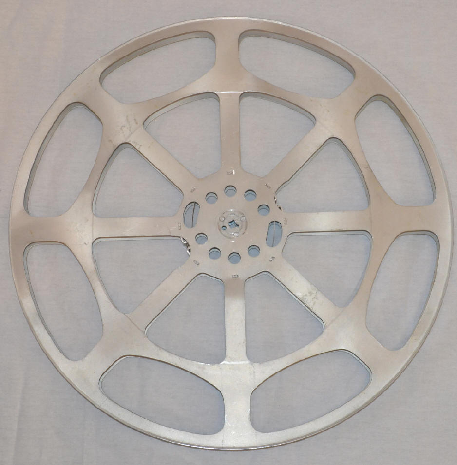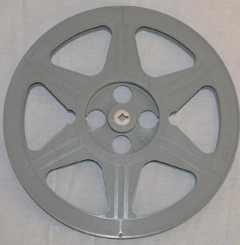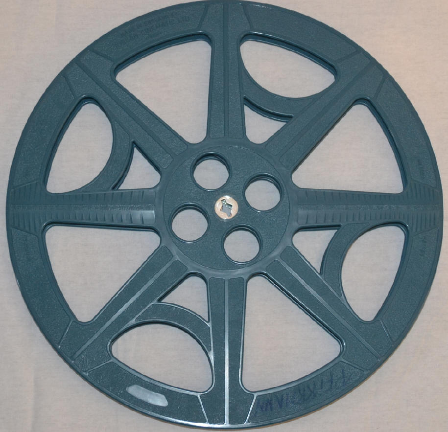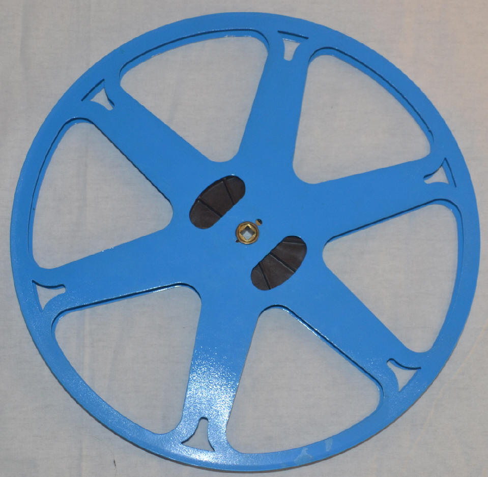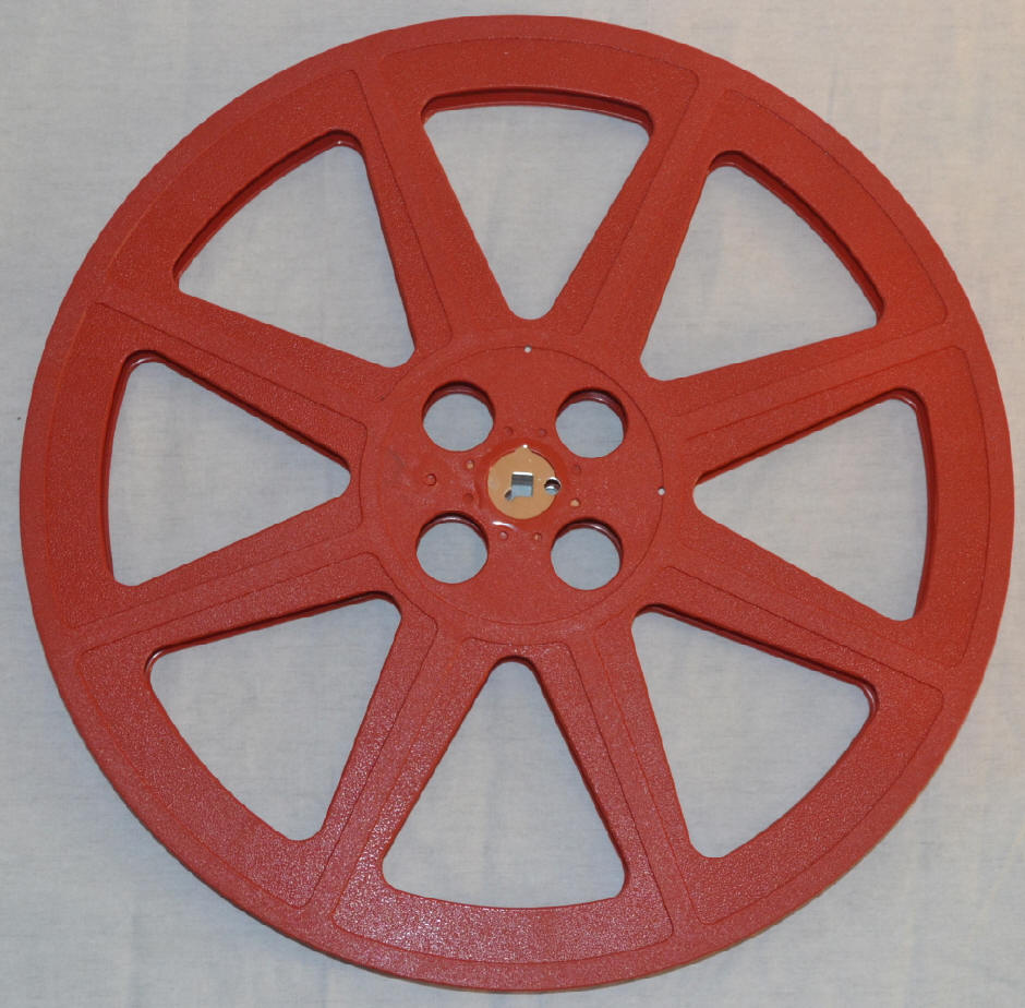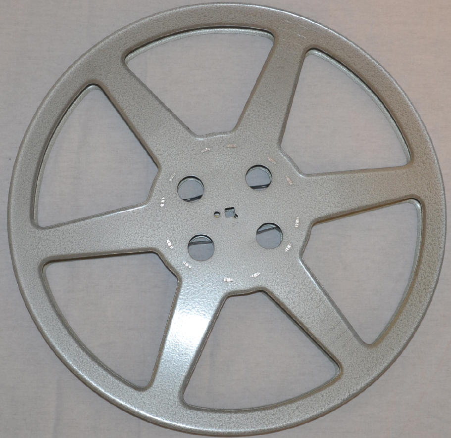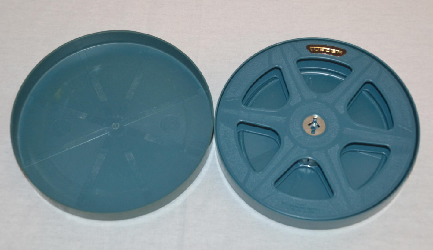 Diese "Steck"-Spule ist teilbar. Damit kann ein Film, der auf einem Bobby aufgespult ist, umgerollt (oder direkt vorgeführt) werden,