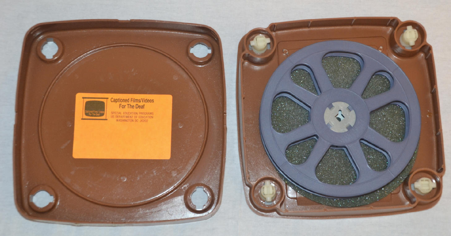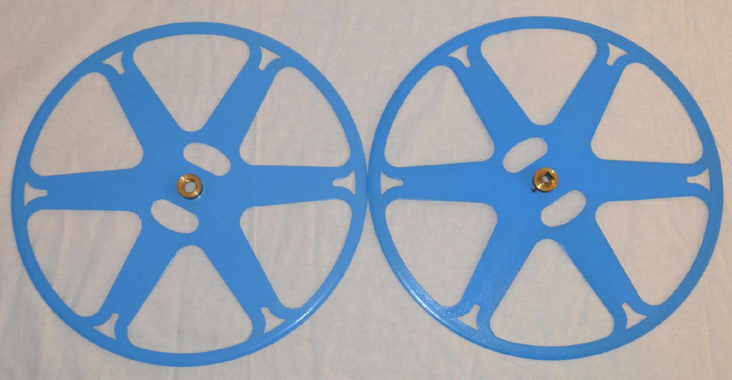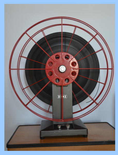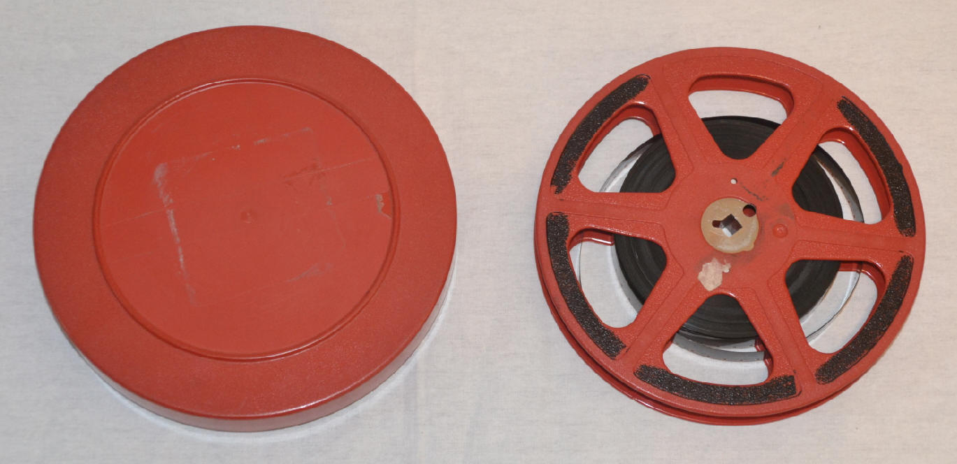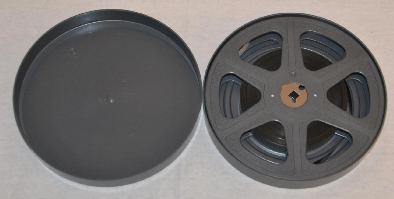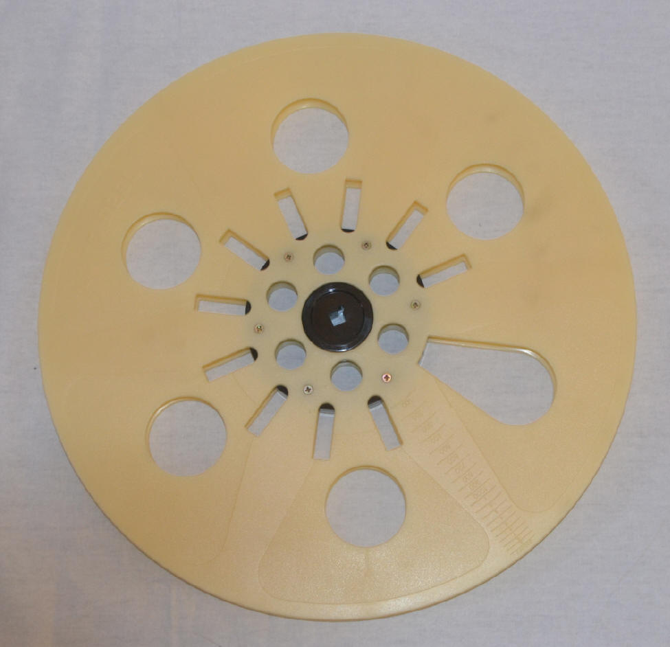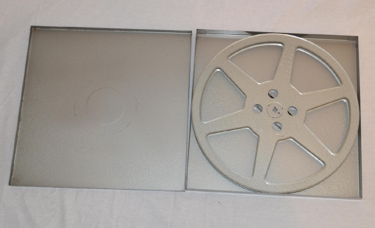 Diese "Steck"-Spule ist teilbar. Damit kann ein Film, der auf einem Bobby aufgespult ist, umgerollt (oder direkt vorgeführt) werden,