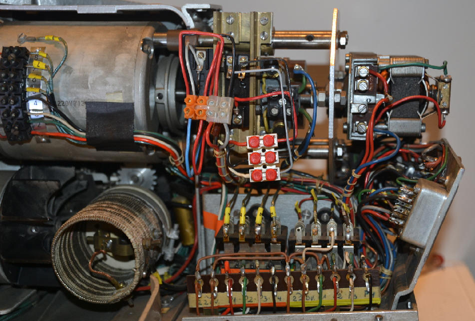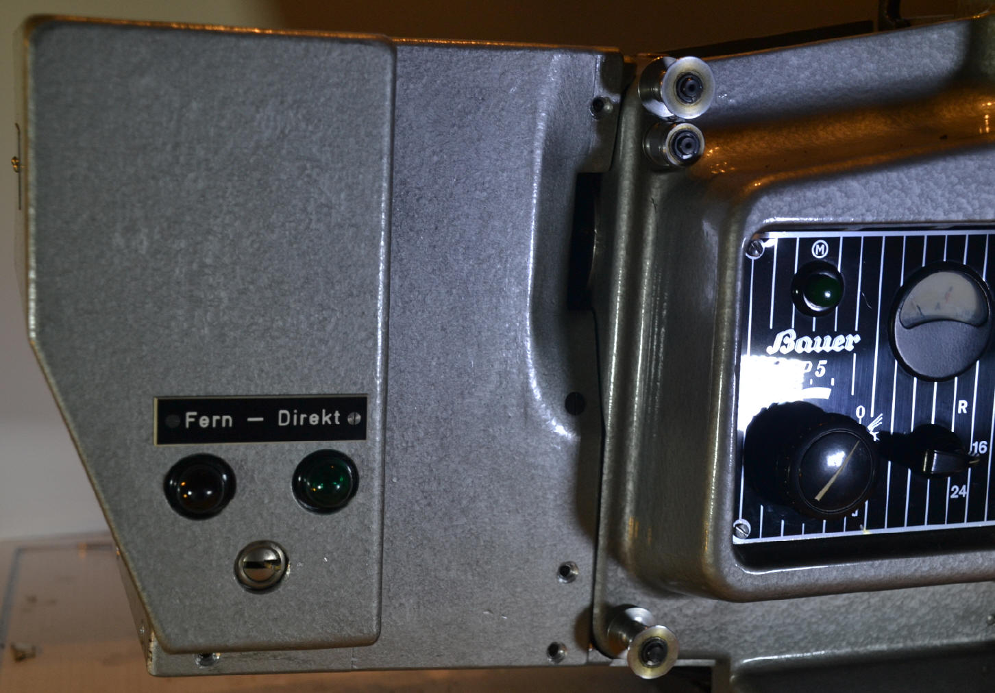 Den P5 dieser Seite habe ich bei Ebay ersteigert. Leider hat der Vorbesitzer keinerlei Informationen zu dem Projektor. Der Projektor wurde von der TU Berlin abgegeben ( vmtl in einer größeren Aktion ) und ist dann eben durch mehrere Hände gegangen bevor er bei Ebay eingestellt wurde. Es sind keinerlei Kabel oder (spezifische) Unterlagen mitgeliefert worden. Zunächst bin ich von einem angeflanschten Synchronmotor ausgegangen( die Bilder bei Ebay waren nicht sehr aussagekräftig - mit den Bildern hier wird man vmtl. nicht auf den Gedanken kommen :-) ). - aber es handelt sich um eine sehr aufwändige Fernsteuerung. In der Stellung direkt läuft der Projektor auch mit allen Funktionen wie ein normales Model. In der Stellung Fern geht (man wird es schon vermuten) gar nichts.