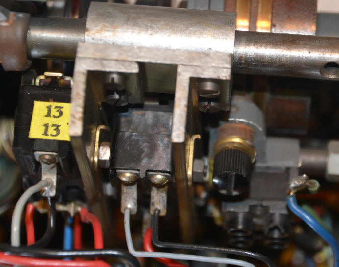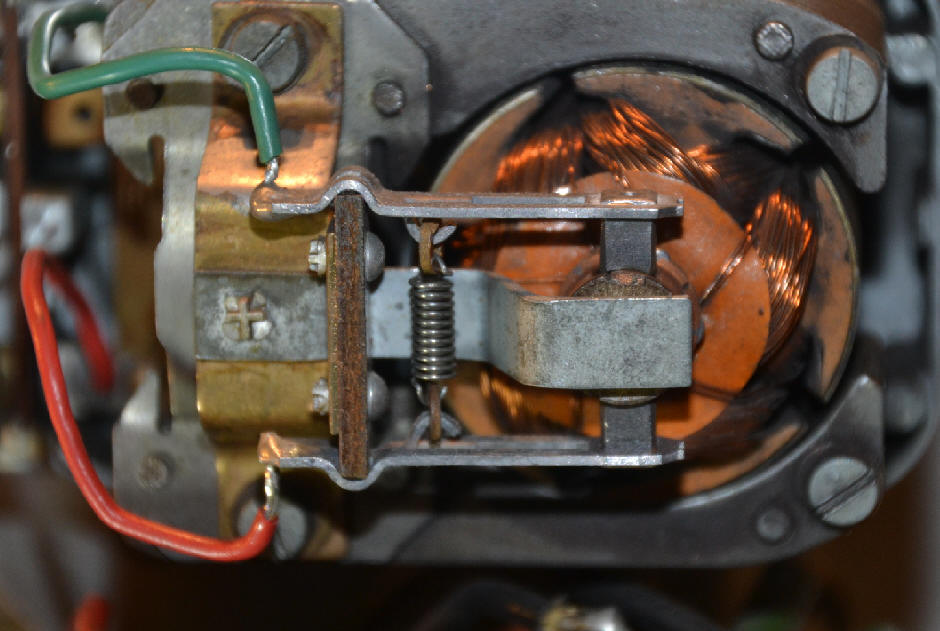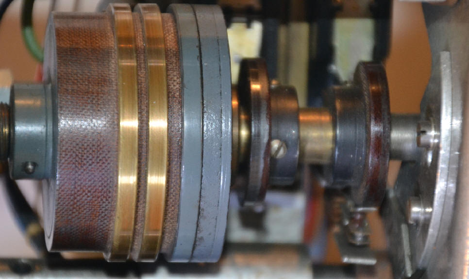 In dem unten eingestellten Video erkennt man, dass der linke Teil nicht starr mit dem rechten Teil verbunden ist . Ob es sich hier um eine Kupplung handeln könnte ? Wofür sind die Schleifkontakte ? Über den Excenter werden zwei Schalter getaktet.