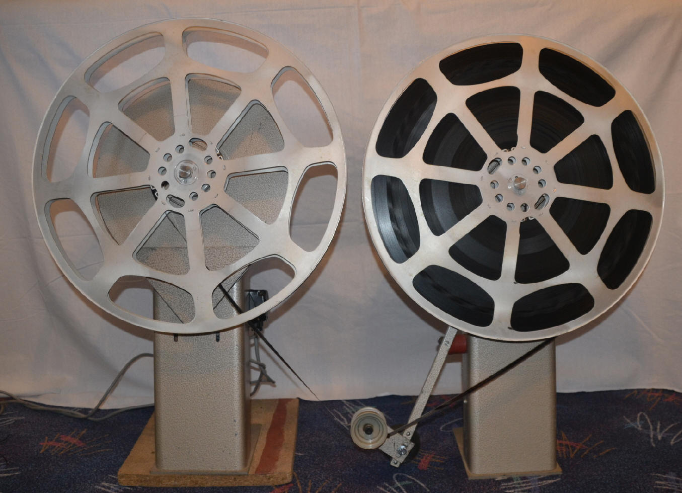 Da dieser Umroller auch nur für die kleinen 35mm Spulen gedacht ist, kommt man bei 600m eben an die Grenze. Spielfilme schaue ich aber sehr gerne ohne Unterbrechung, und somit meist von größeren Spulen. Da jetzt auch der 35er Film ab und zu bei mir zum Einsatz kommt musste eine andere Lösung her. Nun denkt man eigentlich, dass der 35er Bereich weit verbreitet ist und zur Zeit einfach Material zu bekommen ist. Na ja, nach einem elektrischen Umroller habe ich eine Weile gesucht. Aber dann habe ich doch einen, für meine Zwecke optimalen, gefunden. Spulen bis 5000m können aufgenommen werden. Die beiden Aufnahmesysteme der 35er Spulen können durch einfaches Austauschen der Achsen verwendet werden. Und hier hatte ich gleich die Idee mir eine weitere Achse für 16mm Spulen anzufertigen.