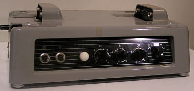 Der 6 Watt Röhrenverstärker PV5 T 1/3 für Licht und Magnettonwiedergabe ( deutlich schmalere Bauform ). Ein Zusatzgerät für die Magnettonaufnahme kann angeschlossen werden.