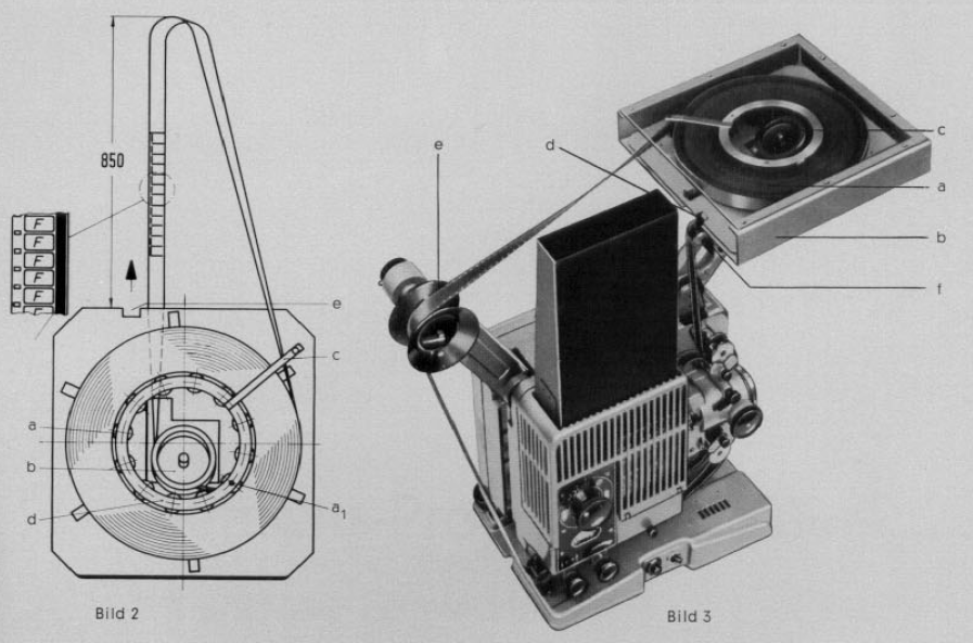 Doch dieses Einfädelsystem war dann doch nicht so einfach zu handhaben wie es auf den ersten Blick vermuten lässt. Der Projektor und das Einfädelsystem mussten erst aufeinander angepasst werden. Mehr unter " Siemens Projektor 2000 Automatic " O b j e k t i v e