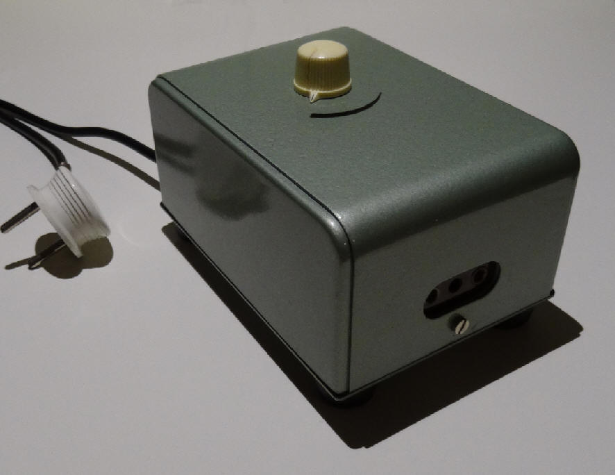 Um einen 110 V Projektor nicht versehentlich am 220 V Netz anzuschließen, erhalten diese einen anderen Netztstecker. Wird der Projektor zusammen mit einem Verstärker verwendet, muß selbstverständlich der Verstärker auch auf 110 V umgestellt werden. Die regelbaren Transformatoren sind in der Lage eine höhere / niedrige Netzspannung auszugleichen ( was heute natürlich nicht mehr vorkommt ) oder die Ausgangsspannung bewusst etwas niedriger zu halten.